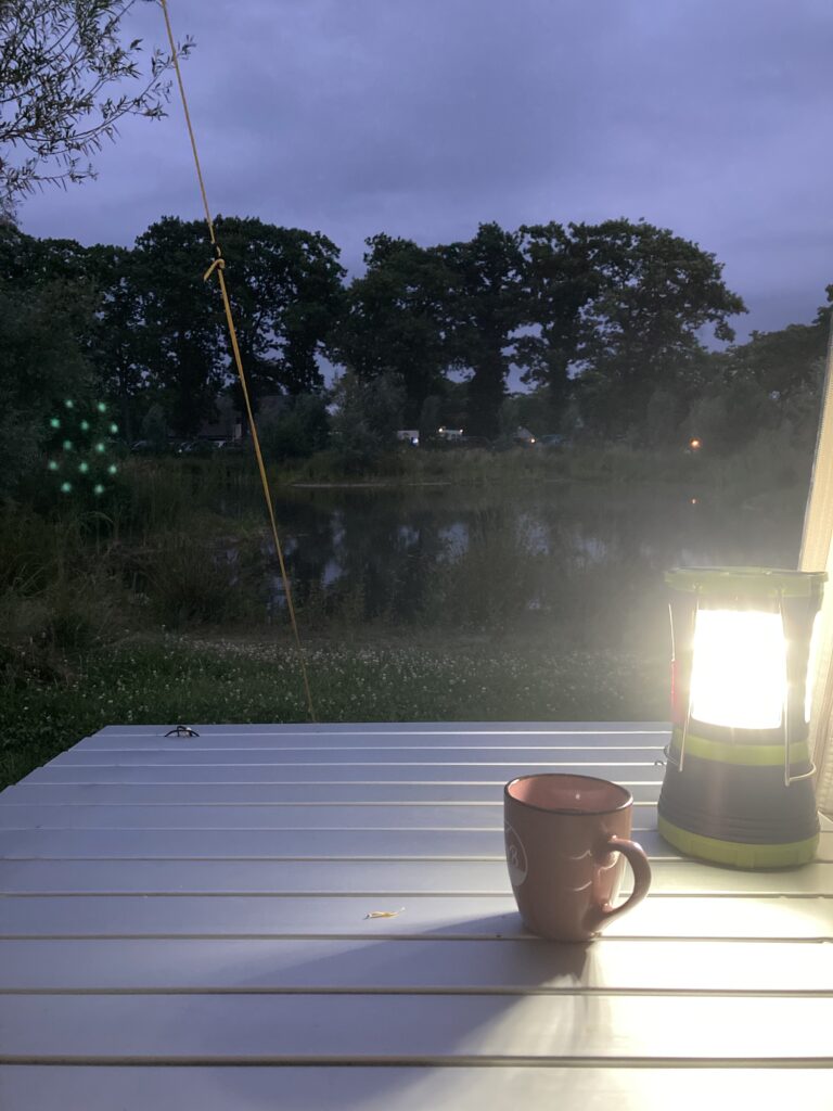 Na uren in de file kwam ik aan op een prachtige, rustige camping in de Brabantse polder — nét toen iedereen al gezellig aan de afternoon tea zat. Mijn tent en spullen lagen nog ingepakt achterin de auto. Het tentenveldje was al bijna vol, alleen nog plek midden in de zon, en ik voelde de moed in mijn schoenen zakken. Op dat moment had ik het liefst rechtsomkeert gemaakt. Maar, ik herinnerde mezelf eraan waarom ik dit wilde doen. Met hulp van een vriendelijke buurvrouw stond mijn tent sneller dan gedacht. Dat contact bleek het begin van een heel fijn weekend samen.